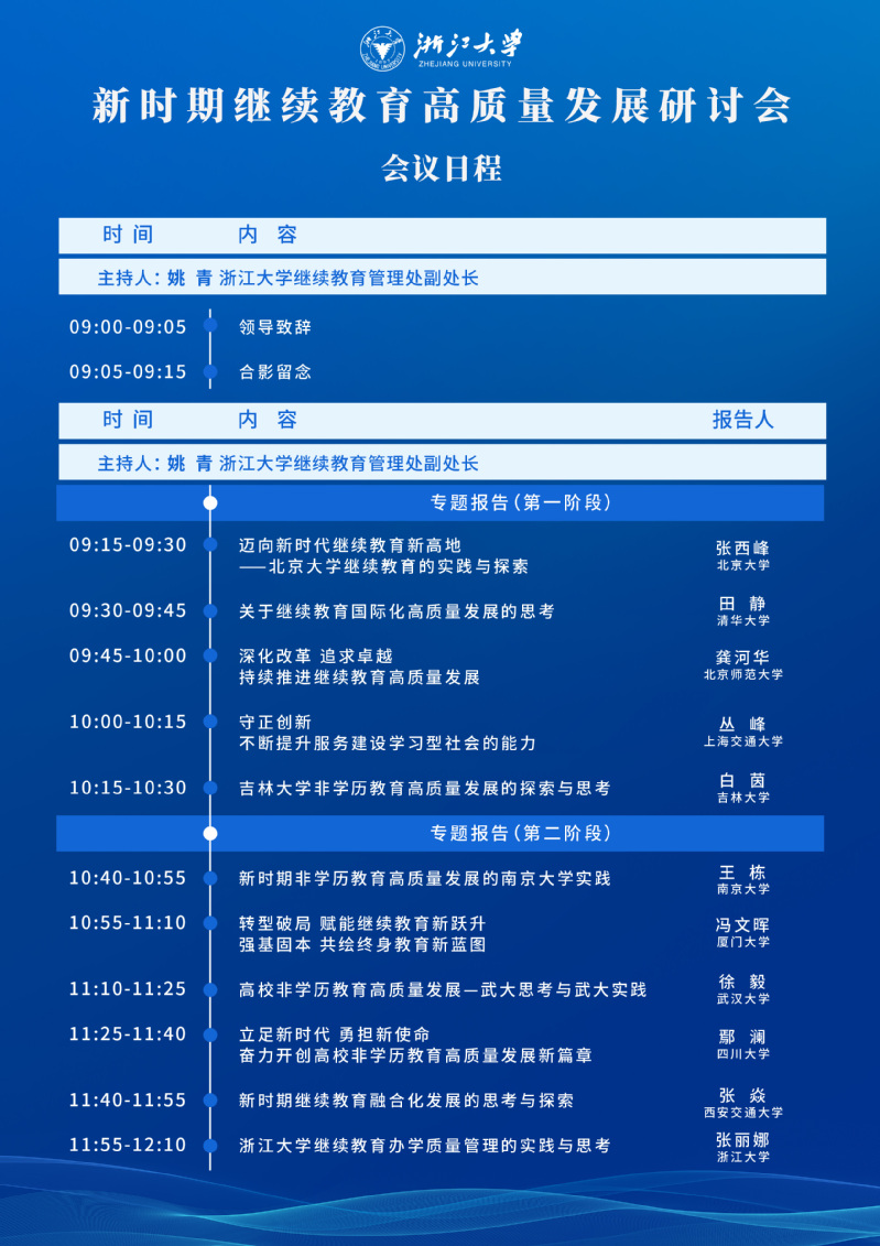 正值全国上下传达学习贯彻党的二十届四中全会精神,制定“十五五”规划擘画未来五年发展新蓝图之际,浙江大学顺利举办新时期继续教育高质量发展研讨会。